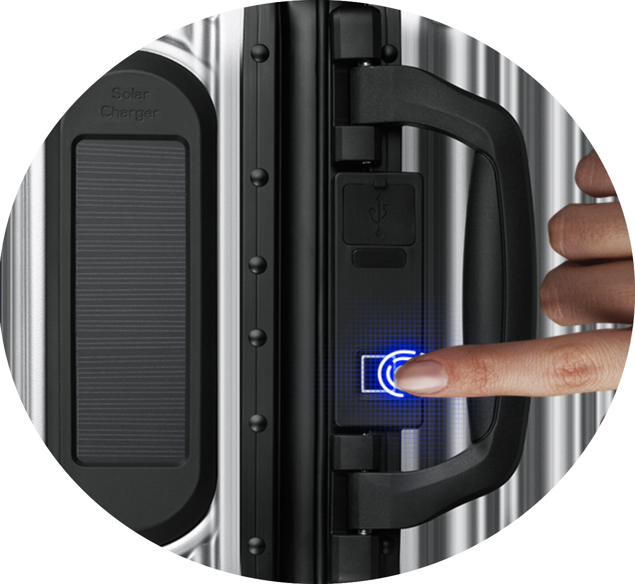 • Биометрический замок (чемодан открывается с помощью отпечатка пальца)